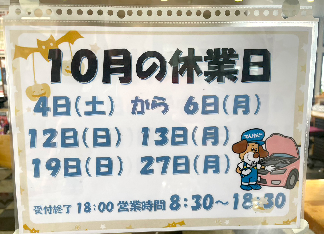 10月の休業日のお知らせ 2025.10.8 10月休業日のお知らせです。 Tweet Share Hatena Pocket RSS feedly Pin it 8月、9月 休業日のお知らせ 前の記事